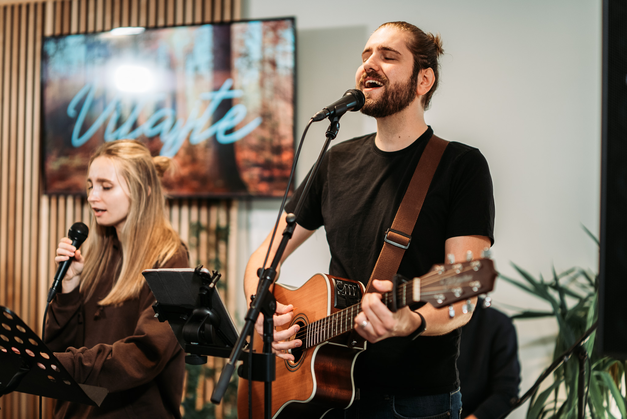 Premýšľanie nad Bibliou, modlitba, piesne, komunita, neformálna časť po skončení, káva, priateľská atmosféra.